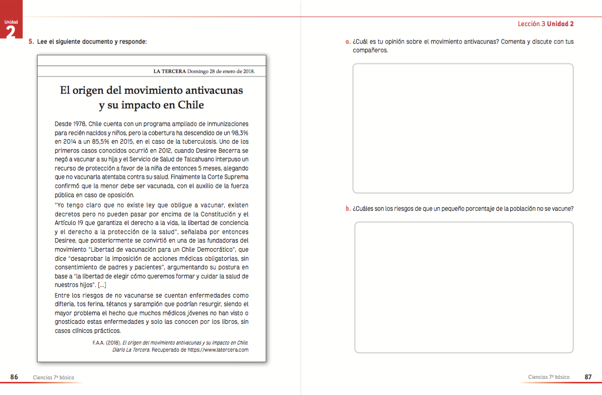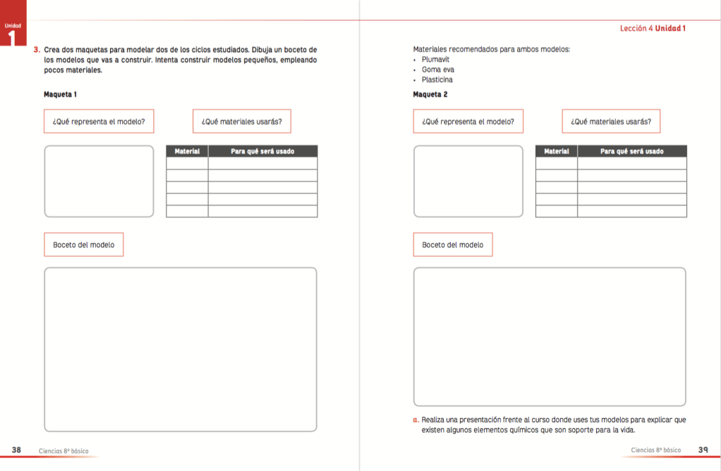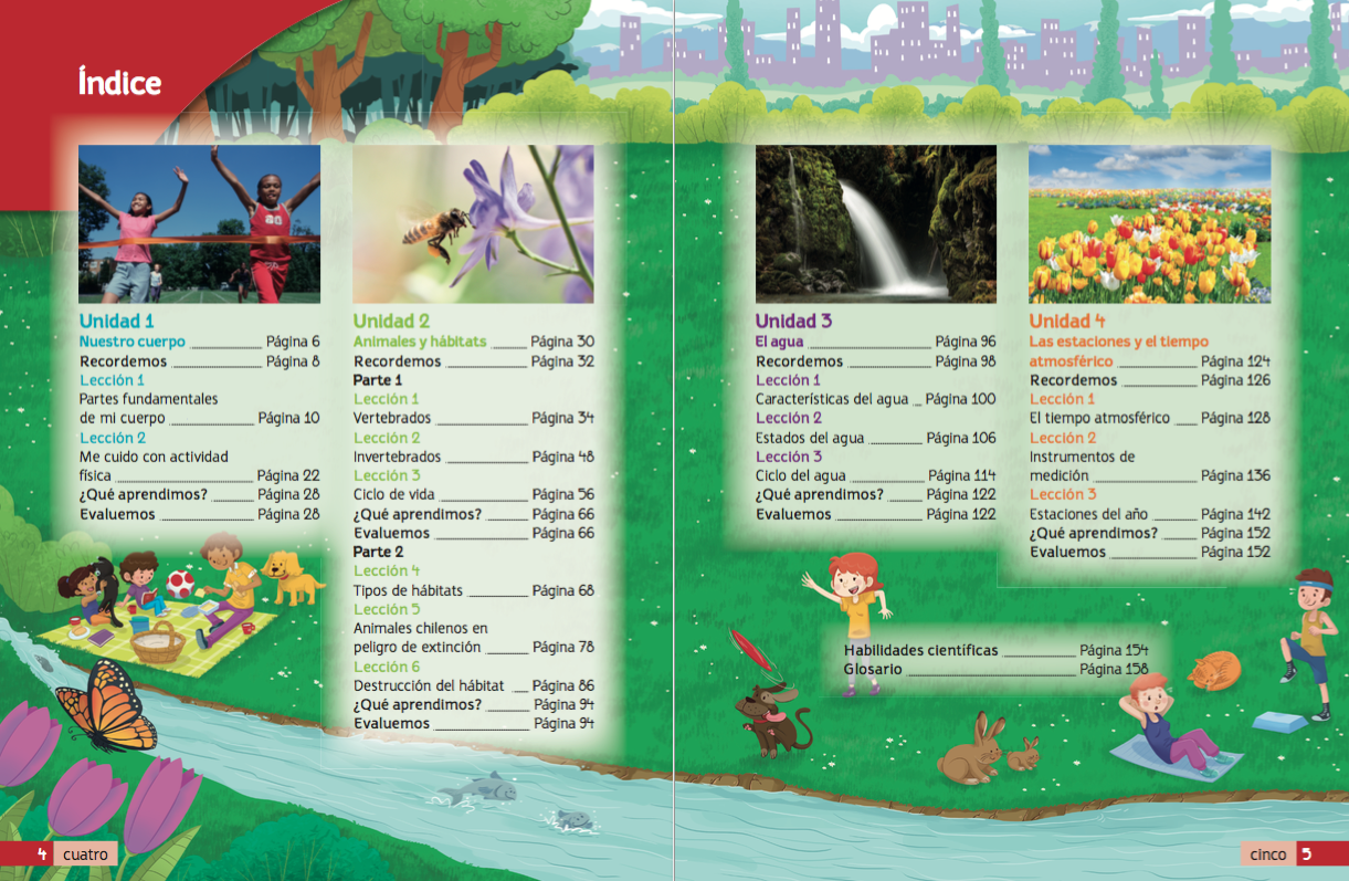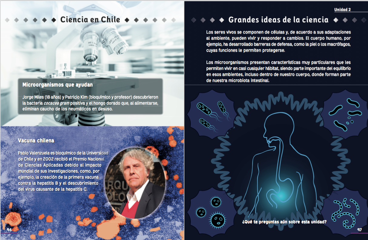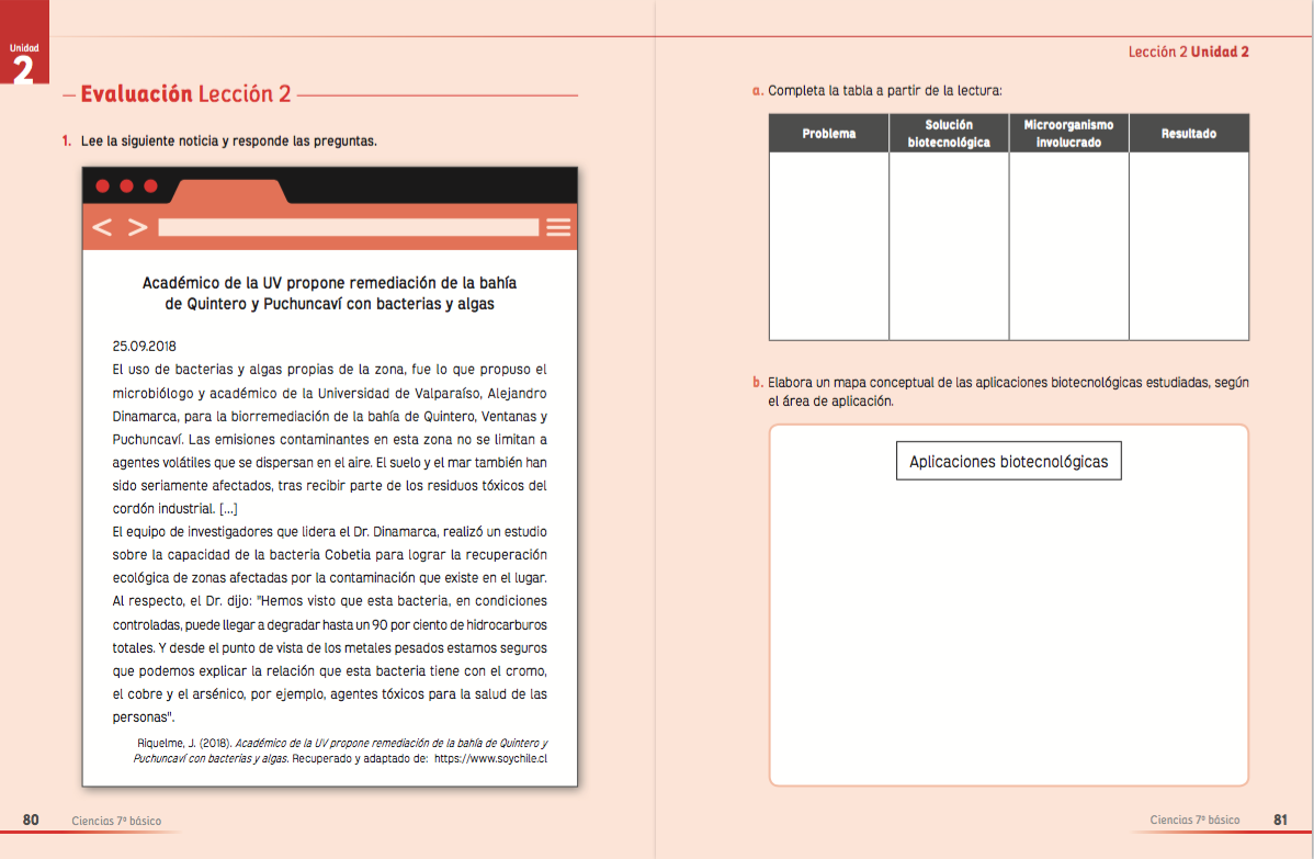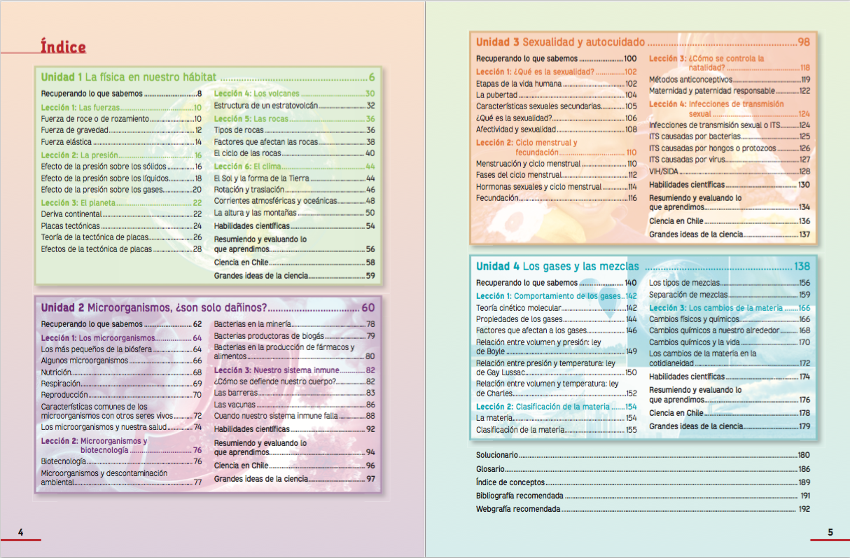 Autoría, edición, diseño y diagramación del Texto para el estudiante, Cuaderno de actividades y Guía didáctica para el docente de Ciencias Naturales 1º Básico, Ciencias Naturales 2º Básico, Ciencias Naturales 7º Básico y Ciencias Naturales 8º Básico, presentados en la Licitación Pública de textos escolares del Ministerio de Educación de Chile durante el año 2019.