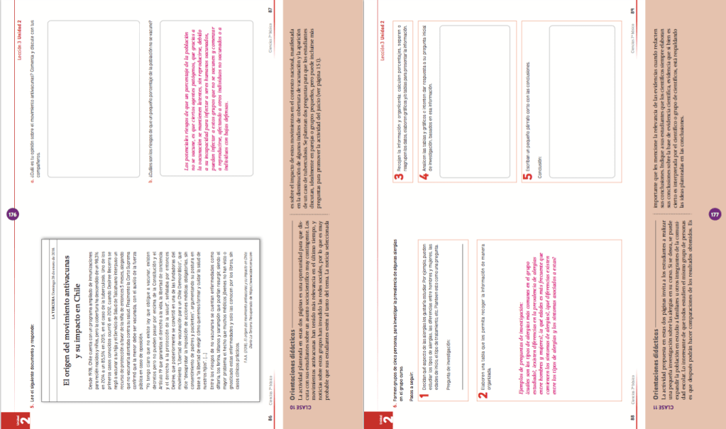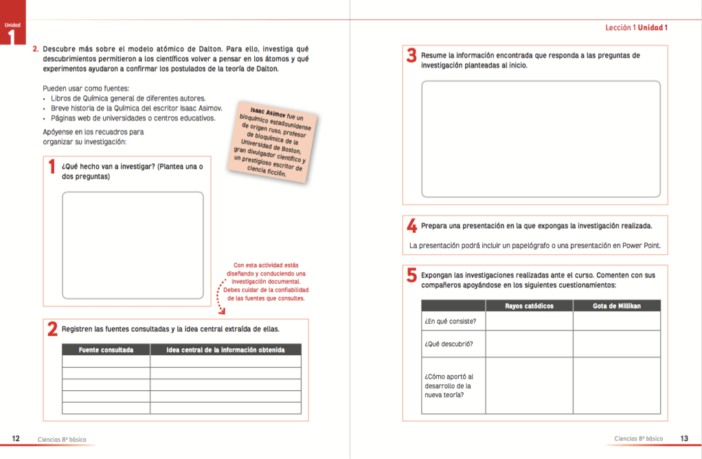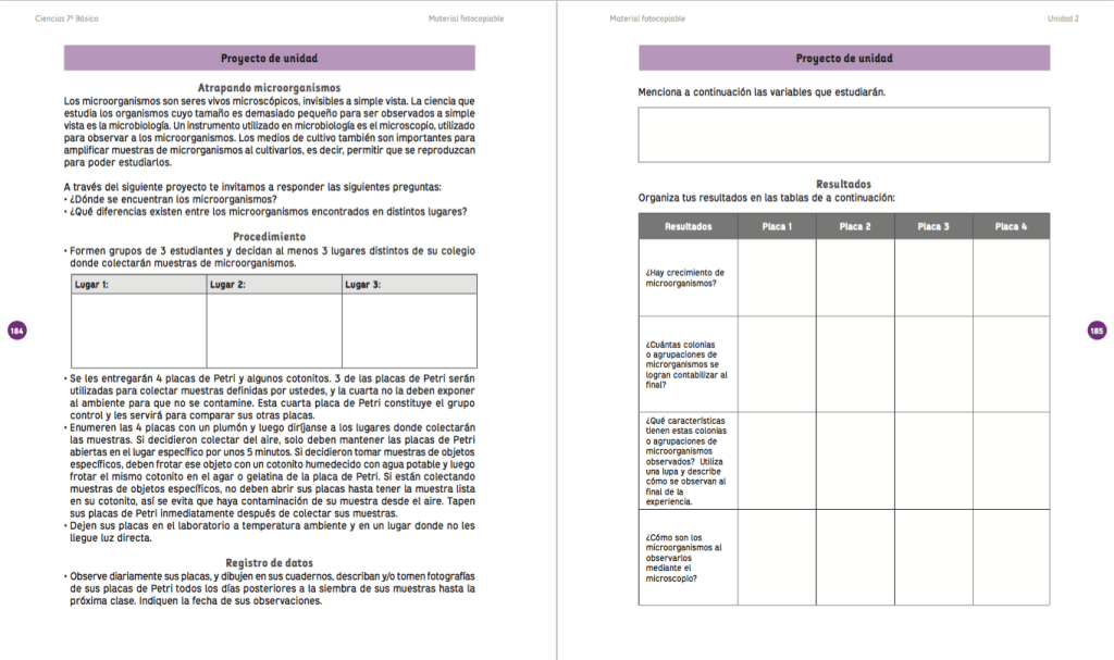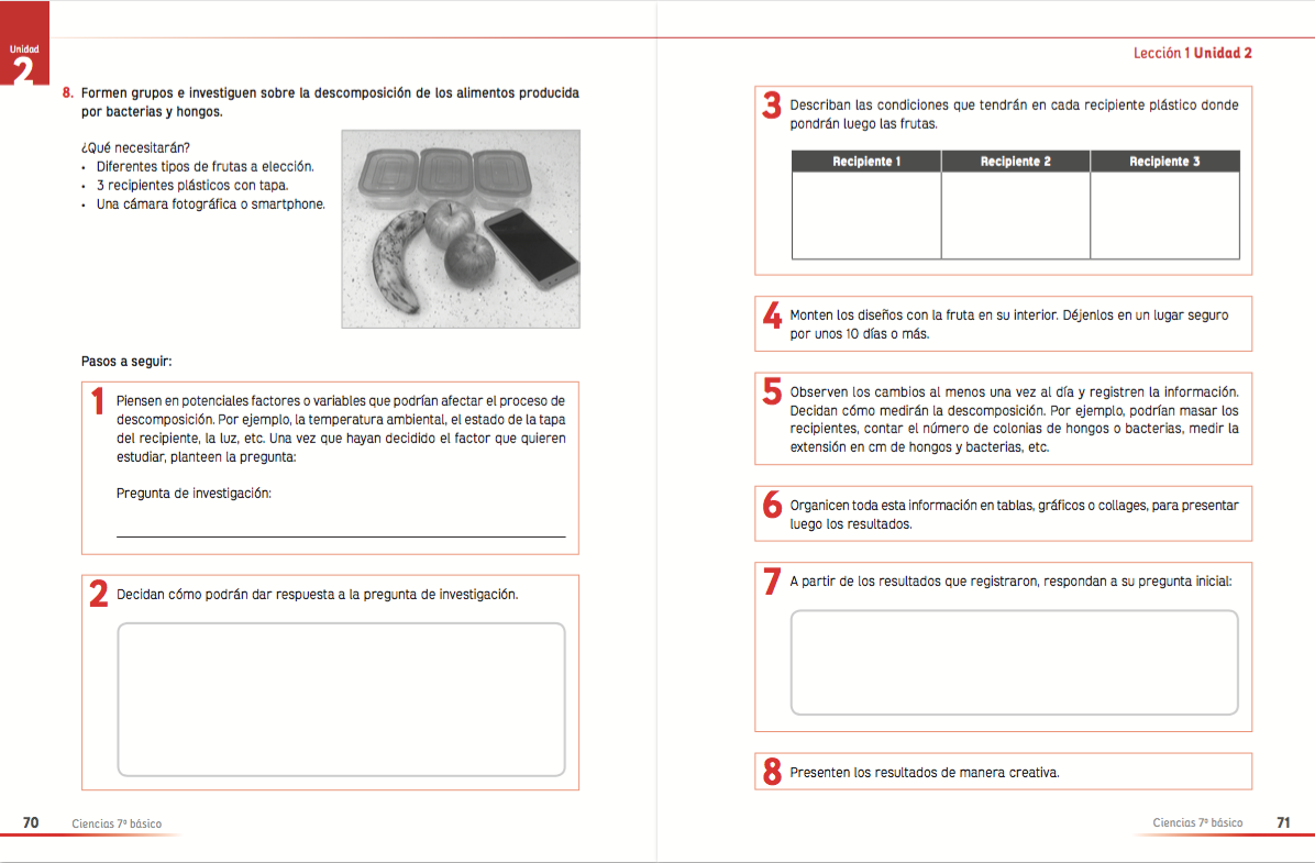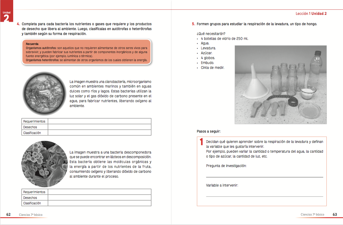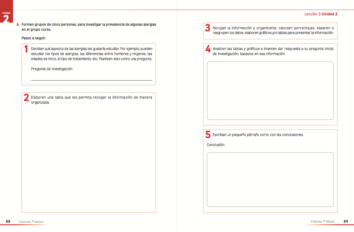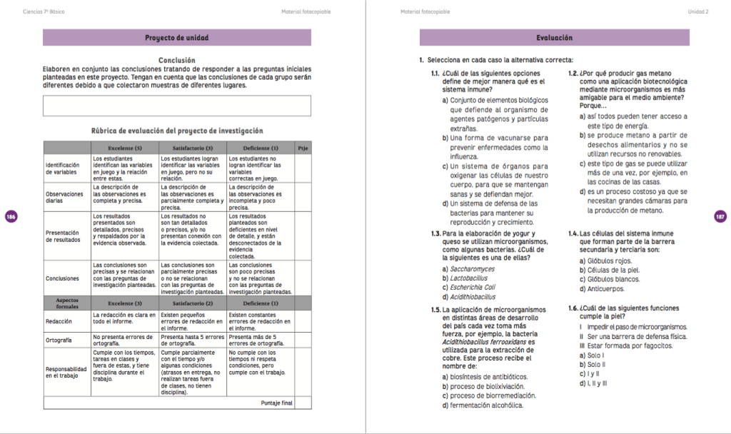 Autoría, edición, diseño y diagramación del Texto para el estudiante, Cuaderno de actividades y Guía didáctica para el docente de Ciencias Naturales 1º Básico, Ciencias Naturales 2º Básico, Ciencias Naturales 7º Básico y Ciencias Naturales 8º Básico, presentados en la Licitación Pública de textos escolares del Ministerio de Educación de Chile durante el año 2019.